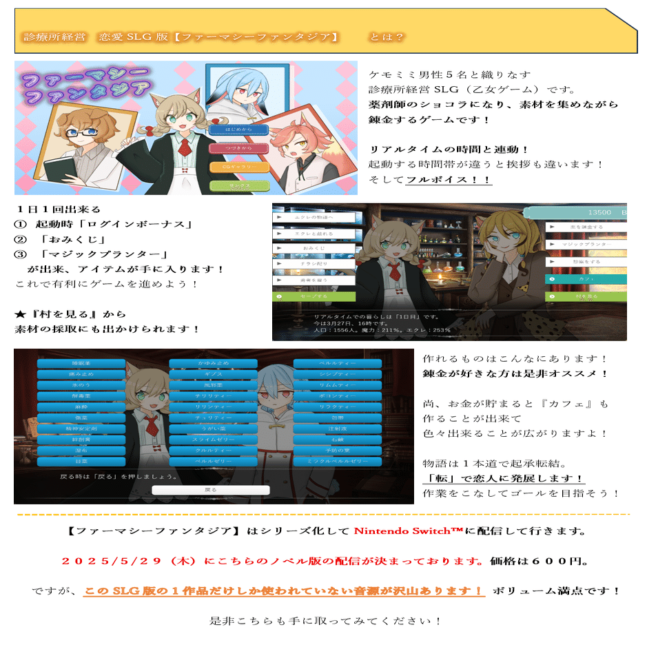 乙女SLG【ファーマシーファンタジア】です!